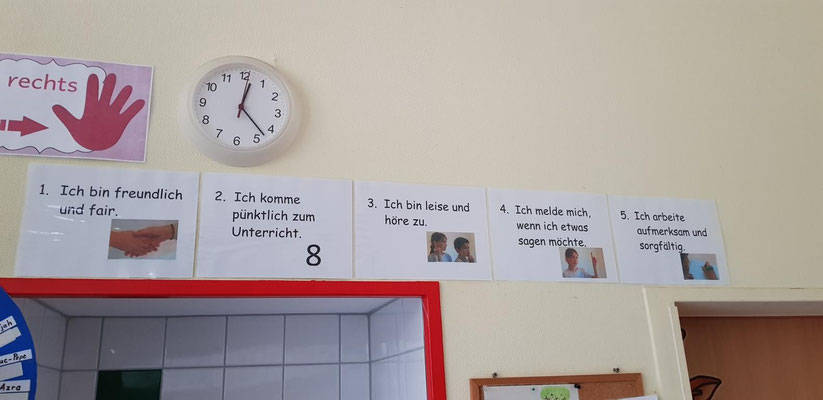 Ohne Regeln geht es nicht! Daher haben wir unsere Klassenregeln und unsere Ampel. Doppelrot ist gar nicht gut, hoffentlich erreicht das niemand.